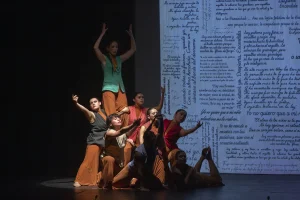 “Con más de 60 bailarines, esta puesta en escena poética y simbólica recorrió las distintas dimensiones de la figura mistraliana: su infancia, su pasión amorosa,
